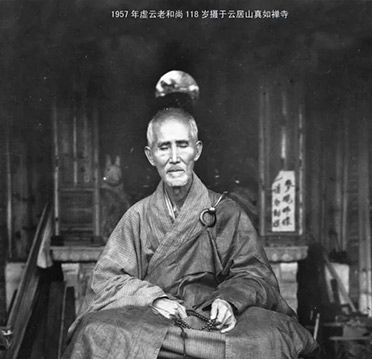 圖:118歲高齡的虛雲老和尚於雲居山真如禪寺天王殿前留影。