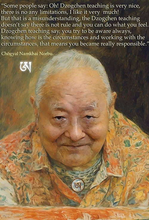 然而,如果說大圓滿拒絕或不尊重智力和推理的活動,那將是一個錯誤。理性是有用,也是必要的。這是實現某些目標的一種手段,但在大圓滿中,放在首位的不是它,而是明覺。在必要的情況下,使用推理應是有用的,但人們也不應忘記任何推理的局限性特徵。