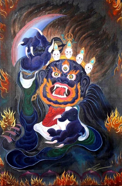 阿賴耶識有真如的淨分也有煩惱習氣的染分,看你的選擇,要成佛還是輪轉。圖為二臂嗎哈嘎拉大護法,代表法身可以以魔身降伏魔王等有情眾生。