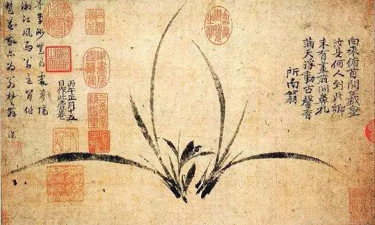 墨蘭圖 鄭思肖 宋末元初詩人、畫家 · 思肖畫蘭均無土和根 紙本水墨 縱25.7 X橫42.4厘米 (日)大阪市立美術館藏