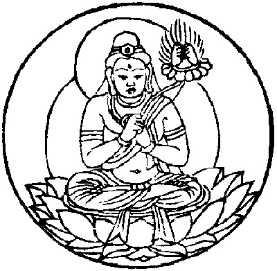 圖:大日如來(又名遍照如來,毗盧遮那佛)大日如來頭戴五佛寶冠,住於智拳印中。象徵五智圓滿獨一法身之義。