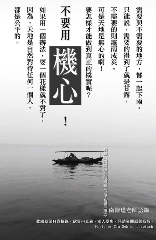心性就像是大海,風動則浪動,無作並不是不動而是其本質不易,不易而變易無窮,但此至理的原則還是簡易的。