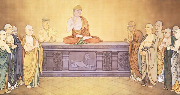 圖:佛祖拈花 迦葉(右靠中間第一位)微笑
