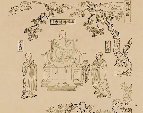 圖:五祖弘忍法衣付傳圖 (右為慧能大師,左為神秀大師)